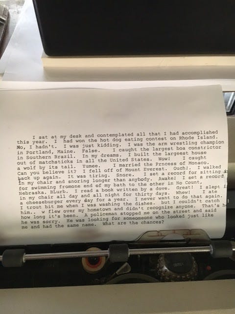 When I wonder who might be the MVP of ‘sentences that shouldn’t work, but do’, James Tate’s probably the frontrunner. This early poem is one of his least weird and most moving, written about his father who died in a plane crash. (Probably avoid reading if you’re in a public place where you don’t want to be seen weeping.) The last poem Tate ever wrote is one of his absolute weirdest. (And I really do mean “last poem”, by the way. As this Paris Review article points out, it was found finished in his typewriter soon after his death.)